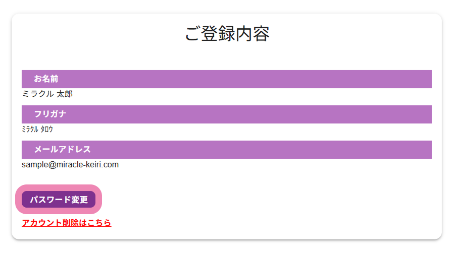 「ミラクルXのアカウント」でログインしている場合はパスワードが変更可能です。