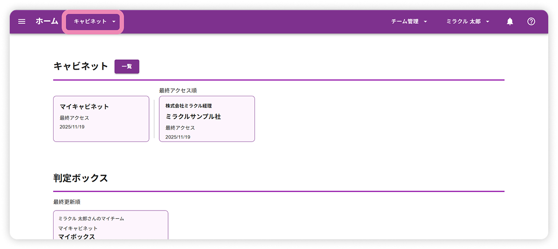 トップバーから「キャビネット」を選択してください。